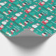Aqui está um padrão colorido e divertido design de papel de embrulho de Natal que também é personalizado! Apresenta uma colagem de imagens bonitas de Feriado, incluindo dois bonitos bonecos de neve, vários ornamentos de árvores, um sino festivo, uma bengala doce, e, claro, o Papai Noel e um trenó carregados com seu saco de brinquedos. As imagens brilhantes são colocadas sobre um fundo verde e bonito. Há dois campos de texto em branco para você personalizar. Adorável, e qualquer criança vai gostar de ver seu próprio nome neste papel de embrulho.