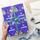 Este papel de embrulho personalizado são Papais noeis jogando hóquei no gelo com esta equipe de renas, espalhando risos, diversão e padrão de espírito de Natal. Este padrão do oge também apresenta skates verdes de hóquei em gelo em flocos de neve, um posto de gotas decorado em luzes de Natal, polos de hóquei com uma coroa de Natal e uma pequena pilha de patas de hóquei vestindo chapéu de Papai noel.