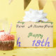 Este amoroso design de papel de embrulho de aniversário exibe uma mensagem como "Happy 18th aniversário, A-Name-Here!", onde o nome e o número de aniversário podem ser personalizados. O fundo é bege colorido. Papel embrulhado como este pode ser usado para embrulhar presentes que estão sendo dados a alguém que está celebrando um aniversário. [~Z0000243]