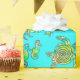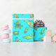 Papel de embalagem de qualidade em azul-aqua com padrão colorido de vida no mar. Esta design divertida mostra animais do oceano. As tartarugas marinhas, golfinhos, cavalos-marinhos, polvos, caranguejos e estrelas-do-mar natações por todos os presentes envolvidos em aniversários, chás de fraldas, graduação e até casamentos temáticos na praia.