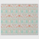 Papel de embrulho de presente de Natal Bonito Festivo Azul. Cor vermelha, branca, rosa mint e pastel, brilhante e feliz. árvores de natal aves, corações, bagas, estrelas. árvores de natal de turquesa.
