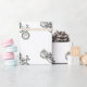 Esta visão de lado direito, a preto e branco, do papel de embrulho de moto desportivo de 1957 é um imperativo para embrulhar presentes para o motociclista na sua vida.