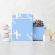 Papel de empacotamento personalizado do nó do arco de fita para chá de fraldas ou primeiro aniversario. Design elegante com nome de criança. Cor de fundo personalizável, ie. azul pastel leve para o menino.