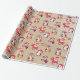 Papel de embrulho de Natal russo com pinguins bonitos em um fundo Kraft. Personalize o nome ou as palavras.
