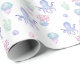 Papel de enrolamento de festas de aniversário com tema náutico, com ilustrações do fundo do mar, polvo fofo, água-viva adorável e uma cauda mágica de sereia.
