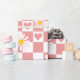 Papel de embrulho com cheques cor-de-rosa com margaridas e corações; perfeito para embrulhar presentes de aniversário para crianças, chás de fraldas, Dia do Namorados e presentes para alguém especial na sua vida.