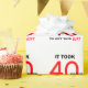 Este divertido papel de embrulho de presente de aniversário de 40 anos é feito especialmente para ele e diz "Levou 40 anos para conseguir este presente". O design aparece em fundo branco com letras vermelhas e pretas para as palavras. Uma maneira excelente de fazer um presente aniversário de 40 anos ainda mais especial. Copyright Kathy Henis