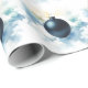 Este papel encantador mostra ornamentos azuis de marinho pendurados em uma delicada camada de fundo amarelo e azul de aquarela. Seu design contemporâneo tornará seus presentes verdadeiramente distintos.