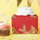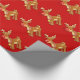 Design de Natal bonito apresenta a rena com um nariz vermelho brilhante sobre um fundo vermelho.