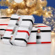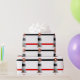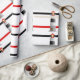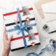 Papel de embrulho único com um design de farol com listras pretas e vermelhas.
