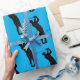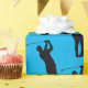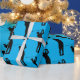 Silhuettes de uma cara balançando seu clube de golfe cobrir este papel de embrulho na moda, moderno. Colocado sobre um fundo azul, este documento é uma excelente escolha para embrulhar presentes para todas as suas caras de golfe.