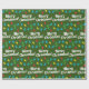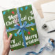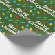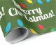 Um papel brilhante de natal festivo com luzes de Natal e um padrão escrevendo de Feliz Natal. A escrevendo cômoda é ousada e, portanto, ofuscada.