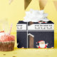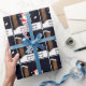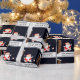 Encapsulamento engraçado de presente de Natal de rugby, que mostra a cena de Papais noeis no telhado chutando uma bola de rugby.