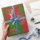 Papel de enrolamento com um bonito padrão cardíaco verde e vermelho.