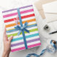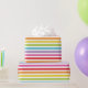 Faça um salto na próxima cesta de aniversário com este brilhante papel de embrulho de festas listradas no arco-íris! Perfeito para festas de aniversário, chás de fraldas ou qualquer celebração. Ordene agora e deixe as comemorações começarem!