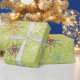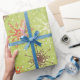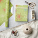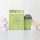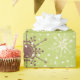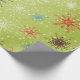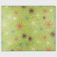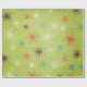 Um papel bonito de férias ou de inverno apresenta um design de floco de neve branco que apresenta flocos de neve de creme, vermelho, marrom e azul sobre fundo verde.