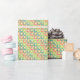 Coral, azul-claro, cinzas ardentes e quadrados bubble verde de maçã com pontos dentro decoram este papel de embrulho amarelo ensolarado em um padrão diagonal, criando um presente divertido e lúdico perfeito para qualquer ocasião.