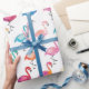 Papel De Presente Papel de enrolamento - Flamingo multicolorido