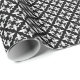 O papel de envolvimento caracteriza um teste padrão da flor de lis no branco em um fundo do ébano. Um design elegante, clássico para algum presente que dá a ocasião.