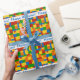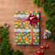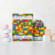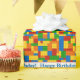 Papel de envolvimento do feliz aniversario dos blocos de apartamentos nas cores de azul, de vermelho, de amarelo, a laranja e o verde. Personalize o texto contudo que você quer.