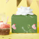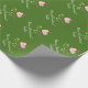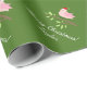 Papel de envolvimento verde bonito do Natal para miúdos e adultos. Design bonito do feriado de inverno com o pássaro cor-de-rosa pequeno em um ramo que veste um chapéu de Papai Noel. Papel de embrulho na moda do Xmas para homens, mulheres e crianças (meninos e meninas). Personalizable com nome feito sob encomenda e as estações que cumprimentam como o Feliz Natal ou boas festas. A cor do fundo é customizável. Modelo da tipografia do roteiro. Disponível em matte e em lustroso. Ilustração animal. Mude a quantidade para obter o preço com desconto maioria barato.