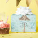 Uma imagem do sepia do vintage da torre Eiffel do expostion de Paris nos 1800s aparece com um endereço escrito à mão e os carimbos postais de Paris do vintage em um fundo dos redemoinhos, das videiras e das folhas no aqua, no azul e no verde.