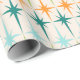 Vintage. Geometrics. Starbursts. Se você ama algumas daquelas palavras, este papel de envolvimento geométrico de Starbursts do vintage retro é para você. Características deste design moderno do meio século um fundo de creme com fileiras da turquesa, do verde limão, da laranja, e dos starbursts da cerceta. Este design da modificação emparelha-se belamente com o teste padrão móvel atômico retro da cebola pequena estranha e os produtos retros da grade e do Starburst. Retire o kitschy com este inacreditàvel teste padrão do divertimento. Vá adiante; alcance para os starbursts!