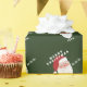 Adicione seu nome a este papel de envolvimento verde tirado mão do Natal do papai noel. O design modelado festivo tem o texto do "Feliz Natal" e o nome brancos do costume.