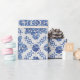 Português handmade muito elegante Azulejos, um tipo do azulejo azul vitrificado com os padrões azuis profundos usados tradicional em construções portuguesas.