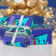 Este papel de envolvimento retro do Natal do partido dos desenhos animados do feriado p-lo-á no espírito do feriado. As características de design o exterior de uma casa moderna do meio século. Através do assoalho às paredes de vidro de turquesa do teto, nós podemos ver as silhuetas dos azuis marinhos de frequentadores festivos do partido. Há um casal que conversa na frente de uma árvore de Natal verde, que seja decorada com ornamento da cerceta. No lado oposto da sala, nós podemos ver que um homem da dança e o homem prolixo todos estão tentando evitar. O exterior da casa caracteriza uma porta vermelha animador com uma grinalda do feriado, uma lareira roxa de tamanho grande do tijolo, e as costas de luzes de Natal coloridas. Uma passagem cinzenta está cortando uma área à porta da rua, através da grama da cerceta. A cena do nighttime tem um céu azul escuro com um amarelo, lua crescente. O boneco de neve plástico que decora o jardim da frente está sendo cumprimentado pelas primeiras agitações de neve da estação. Um casal atrativo está fazendo o cha-cha-cha na maneira a seu carro. A mulher loura está vestindo um vestido vermelho brilhante. Está guardarando um sprig do visco em uma mão. Sua escolta considerável está vestindo um terno preto e um laço vermelho. Suas mãos são envolvidas em torno da cintura da mulher. Na rua, na frente da casa, nós podemos ver três, carros clássicos brilhantemente coloridos. A ordem hoje e o partido como ela são 1959!