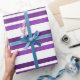Este papel de envolvimento simples, moderno caracteriza três máscaras do roxo em um teste padrão listrado do ombre.
