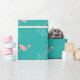 Papel de envolvimento tropical do Natal do flamingo cor-de-rosa com cumprimentos personalizados do nome e das estações. Design bonito do giftwrap do xmas com o pássaro tropical que veste um chapéu de Papai Noel. Feriado engraçado que envolve fontes para mulheres e miúdos dos homens. Feliz Natal! Azul de turquesa ou cor do fundo do costume. Disponível em matte e em lustroso.