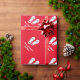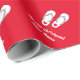 Papel de envolvimento vermelho tropical dos chinelos do Feliz Natal com cumprimentos personalizados do nome e das estações. Design bonito do giftwrap do xmas com deslizadores ou as sandálias tropicais da praia. Feriado engraçado que envolve fontes para mulheres e miúdos dos homens. Feliz Natal! Cor customizável do fundo. Disponível em matte e em lustroso.