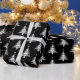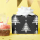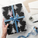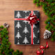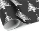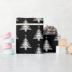 O papel de embrulho de Natal é mostrado com uma impressão de árvores de Natal preto e branco. Personalize este papel ou apenas o comprar como está.