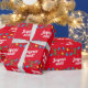 Um papel brilhante de natal festivo com luzes de Natal e um desejo Feliz de Natal em língua francesa. Diz "Joyeux noël!" num belo escrevendo cursivo.