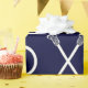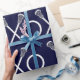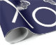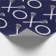 Molho de presente de lacrosse criativo ou decoração de evento esportivo com paus de lax e padrão de xo em fundo azul marinho.