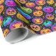 O papel de embrulho do Dia das Bruxas é mostrado numa impressão festiva de abóboras em cores neonatais. Glossy mostrado Personalize este papel ou apenas o comprar como está.