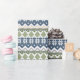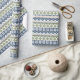 Camadas de padrões inspiradas por designs encontrados em camisolas nórdicas criam um maravilhoso sentimento de inverno com flocos de neve, montanhas e árvores verdes.