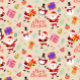Um padrão de Natal perfeito com Papai Noel, boneco de neve, pinguim, pão de gengibre, caixas de presentes, bolas de Natal e folhas em um fundo bege. O estilo é cartoonista e colorido.