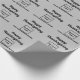 Feliz Dia de Ação de Graças! Feriado para comemorar em novembro para obrigado pelas bênçãos que recebemos. É também um dos feriados para anunciar a sua empresa. Papel de embrulho personalizável com um padrão perfeito de saudação Feliz de Ação de Graças, seu nome de negócios e logotipo. Material de empacotamento que você pode usar para criar reconhecimento de nome de marca. As cores design são textos pretos em fundo de cinza. Verifique a aparência após carregar o logotipo e digitar o nome da sua empresa. Se a aparência lhe agrada, você pode colocar seu pedido agora. Se você precisar redimensionar e mover o logotipo e o nome da sua empresa para o ajustado, mude a ferramenta design. Você também pode alterar a cor do plano de fundo, a cor da fonte e o estilo da fonte na ferramenta design. Embalagem de material para venda, produtos de promocional, itens ou presentes para seus clientes. Empachando papel para receber seus clientes ou clientes nesta temporada de Ação de Graças, anunciar sua empresa ou promover seu nome de marca. Feliz Dia de Ação de Graças! Desejo mais vendas para você neste feriado.