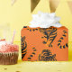 Papel de embrulho mostrado em cor laranja com um impressão de tigre.
