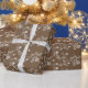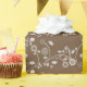 Papel de embrulho para presentes mostrado em cor castanha com impressão floral branco. Personalize este papel ou comprar conforme mostrado.