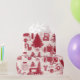 Design de madeira vermelha com caminhões de coleta, talhantes, cestos de piquenique, cacau quente, skates de gelo e árvores de Natal. Papel de embalagem perfeito para qualquer idade ou sexo.