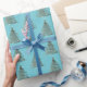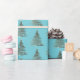 Papel de embrulho de presente de Natal mostrado em Aqua com um impressão mágico de Árvore de Natal em Castanho/Dourado. Altere as cores de fundo se preferir. Veja a coordenação da árvore de Natal em etiquetas de palitos para completar o seu presente. Feliz Feriados! Personalize este papel ou comprar conforme mostrado.