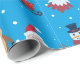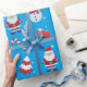 Comemore a época de férias em estilo com este papel de embrulho festivo com um design divertido e vibrante. O fundo é uma cor azul-céu, adornada com homens de neve vestindo chapéus pretos e lenços vermelhos, junto com Santa Clauses alegres em suas roupas icônicas. Incluem-se também as renas alegres, as árvores de Natal decoradas em vermelho e branco, canas doces, presentes, mangas e flocos de neve espalhados por toda parte. Este padrão encantador cria a atmosfera perfeita para presentes durante o feriado. Ideal para embrulhar presentes e adicionar um toque festivo a qualquer ocasião.