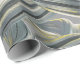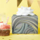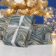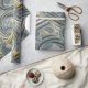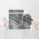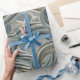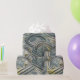 Sobreposição de anéis dimensionais em prata virando pontas douradas. (Esta versão do design repete de forma exclusiva a cada 18 pol de largura, para melhor combinar com a impressão dos rolos de papel de embrulho.)