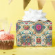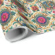 Celebre o amor e o compromisso com este maravilhoso papel de presente de casamento, apresentando elegantes motivos florais e dois anéis de ouro entrelaçados no centro do design. Tons vibrantes de joias, incluindo fúcsia, azul cobalto, amarelo dourado e verde, criam um visual ousado e sofisticado, perfeito para embrulhar presentes de casamento ou presentes para a festa de noivado. O padrão contínuo garante uma aparência polida e profissional, enquanto os detalhes intrincados adicionam um toque de romance e charme. Perfeito para casamentos, aniversários ou qualquer ocasião romântica especial.