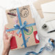 Este papel de embalagem deixa claro que um presente foi entregue com cuidado pelos próprios Papais noeis! Do rótulo da Reindeer Express até o selo "Papais noeis aprovados", você vai se perguntar o que é dentro!
