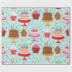 Papel De Presente Parabéns, bolos e Cupcakes, padrão em azul