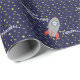 Retro Rocket com fundo estelar. Feliz aniversário com idade e nome personalizáveis.